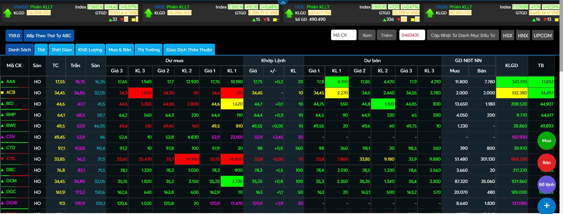 - KL: Là tổng khối lượng cổ phiếu trong một phiên giao dịch.
