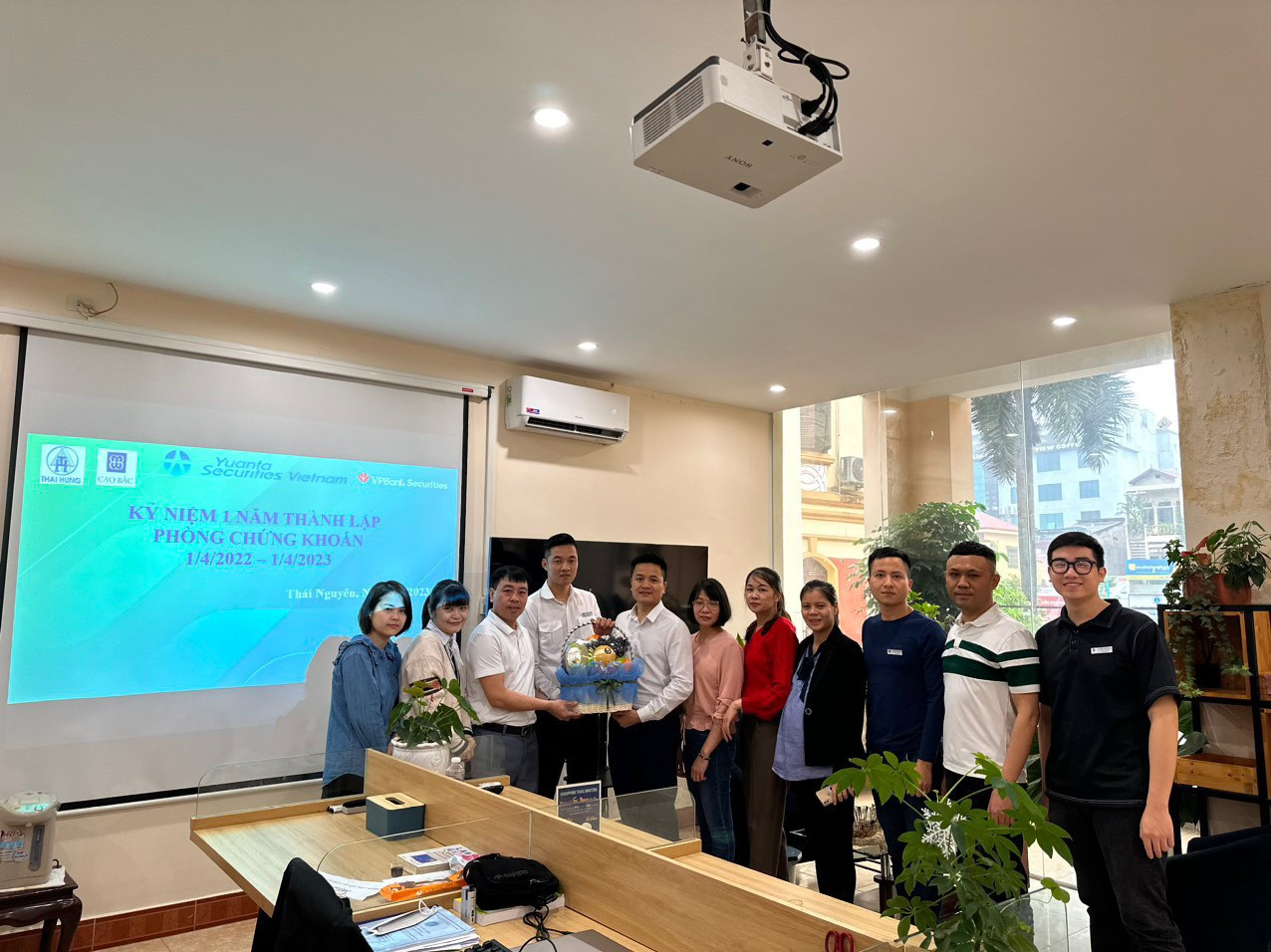 Với tôn chỉ “Xây niềm tin vững, Dựng uy tín vàng”, chỉ sau 1 năm thành lập, Phòng Chứng khoán đã phát triển mạng lưới gồm 54 cộng tác viên, hơn 500 khách hàng tin dùng sử dụng dịch vụ. Trong đó, có những khách hàng lớn là các doanh nghiệp trong địa bàn tỉnh Thái Nguyên như CTCP Thương mại & Khai thác Khoáng sản Dương Hiếu, CTCP Phát hành Sách Thái Nguyên, CNT Group, Bệnh viện Quốc tế Thái Nguyên, CTCP Đầu tư và Phát triển TDT,...