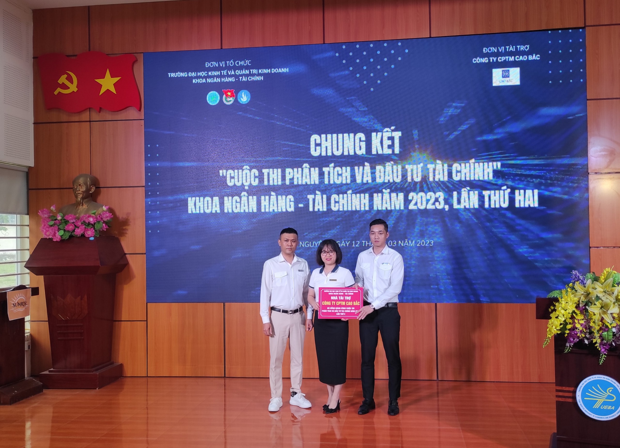 Sáng ngày 12-03-2023, theo chương trình hợp tác với Trường Đại học Kinh tế và Quản trị kinh doanh Thái Nguyên, lãnh đạo Phòng chứng khoán - Công ty cổ phần thương mại Cao Bắc đã đến dự và tham gia Hội đồng giám khảo cuộc thi "Phân tích và Đầu tư tài chính".