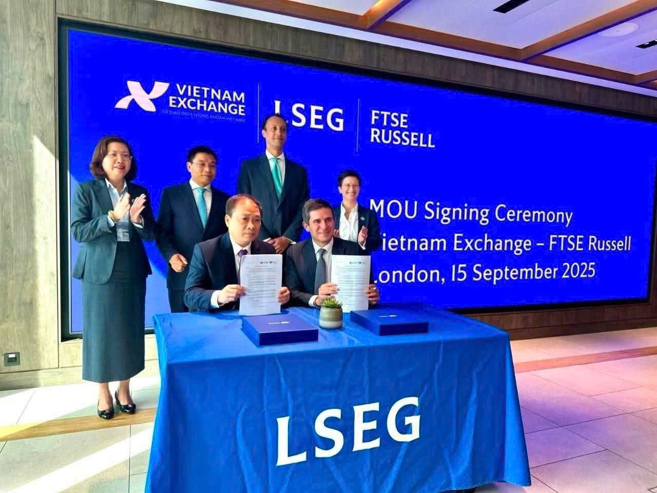 Trong khuôn khổ chuyến làm việc, Sở Giao dịch Chứng khoán Việt Nam (Vietnam Exchange) và FTSE Russell đã ký Bản ghi nhớ hợp tác (MOU). Đây là bước tiến quan trọng, không chỉ xác nhận sự đồng thuận về mặt kỹ thuật mà còn mở ra cơ hội hợp tác lâu dài, thúc đẩy quá trình nâng hạng.